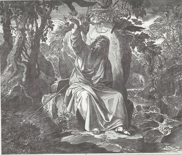 Un ange réveille alors Élie et l'exhorte à se remettre en route pour un long voyage jusqu'à la montagne de Dieu, le Mont Horeb. Ce dernier proteste à nouveau.