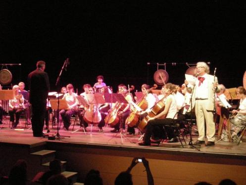 Frédéric Langé à la tête de l'orchestre des professeurs et des élèves.